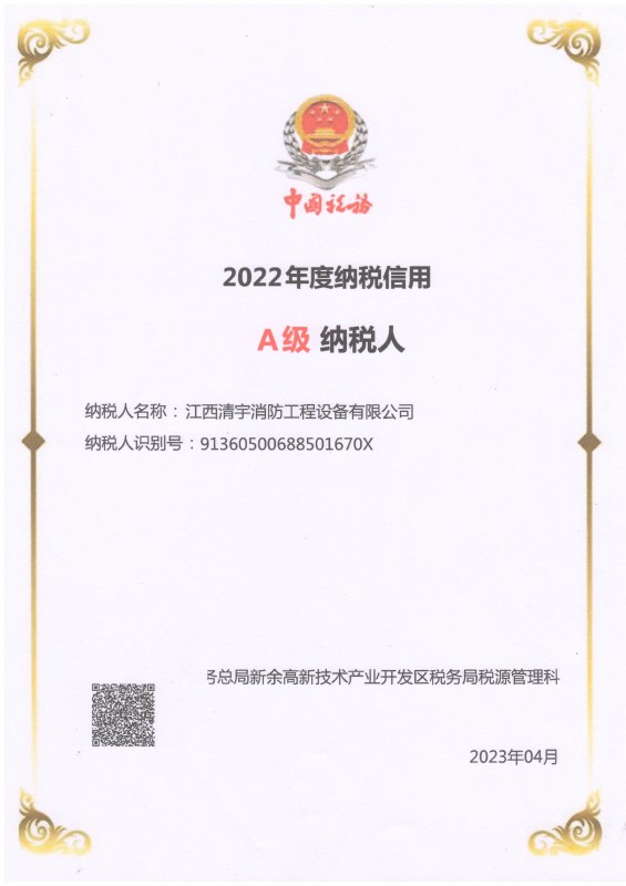 2022年度A級納稅信用證書